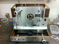 the boiler is complete, the valves too. all the plumbing descaled, cleaned, polished and clearcoated.now the grouphead... well, no progress on that front. the espresso machine repair shop here in sf is superbusy, works solely on conventional pump machines (who has a lever here in town anyway besides Blue Bottle?) and doesn't have any clue regarding lever machines. no problem if they would let you know right away...